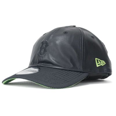 MLBレッドソックス レザー調 カーブバイザー キャップ